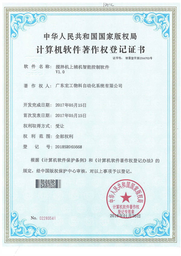 軟件著作權(quán)-攪拌機(jī)上輔機(jī)智能控制軟件V1.0