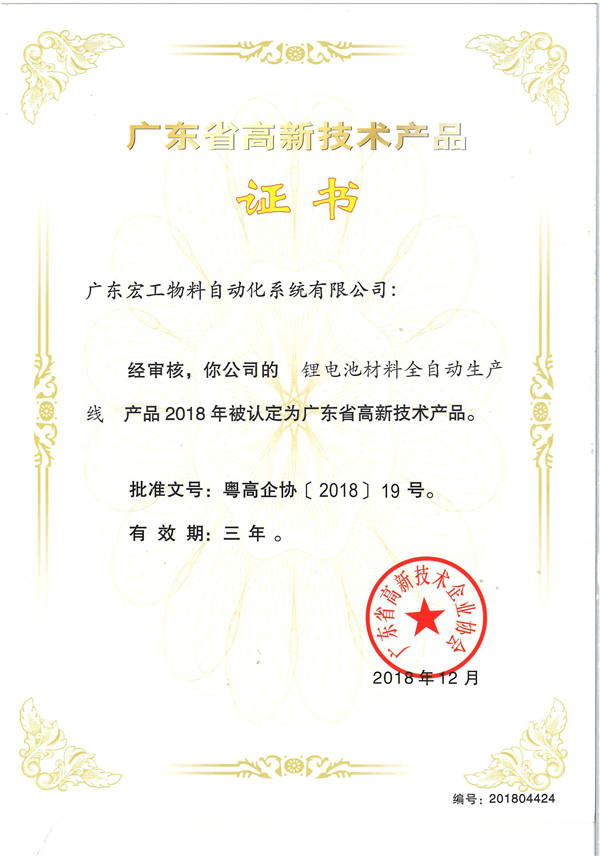 高新技術(shù)產(chǎn)品認(rèn)定-鋰電池材料全自動(dòng)生產(chǎn)線(xiàn)